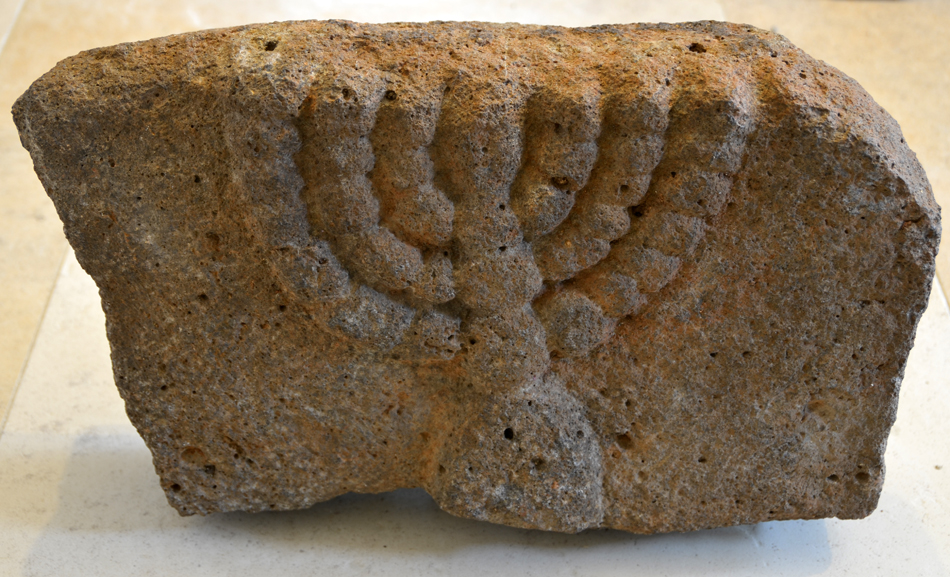 Ménorah. Relief sculpté en basalte – Circa 4e siècle ap. J.-C.