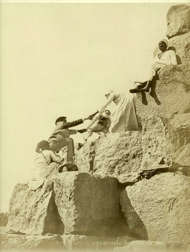 EGYPTE – Ascension de la pyramide de Chéops. Félix Bonfils, vers 1880.