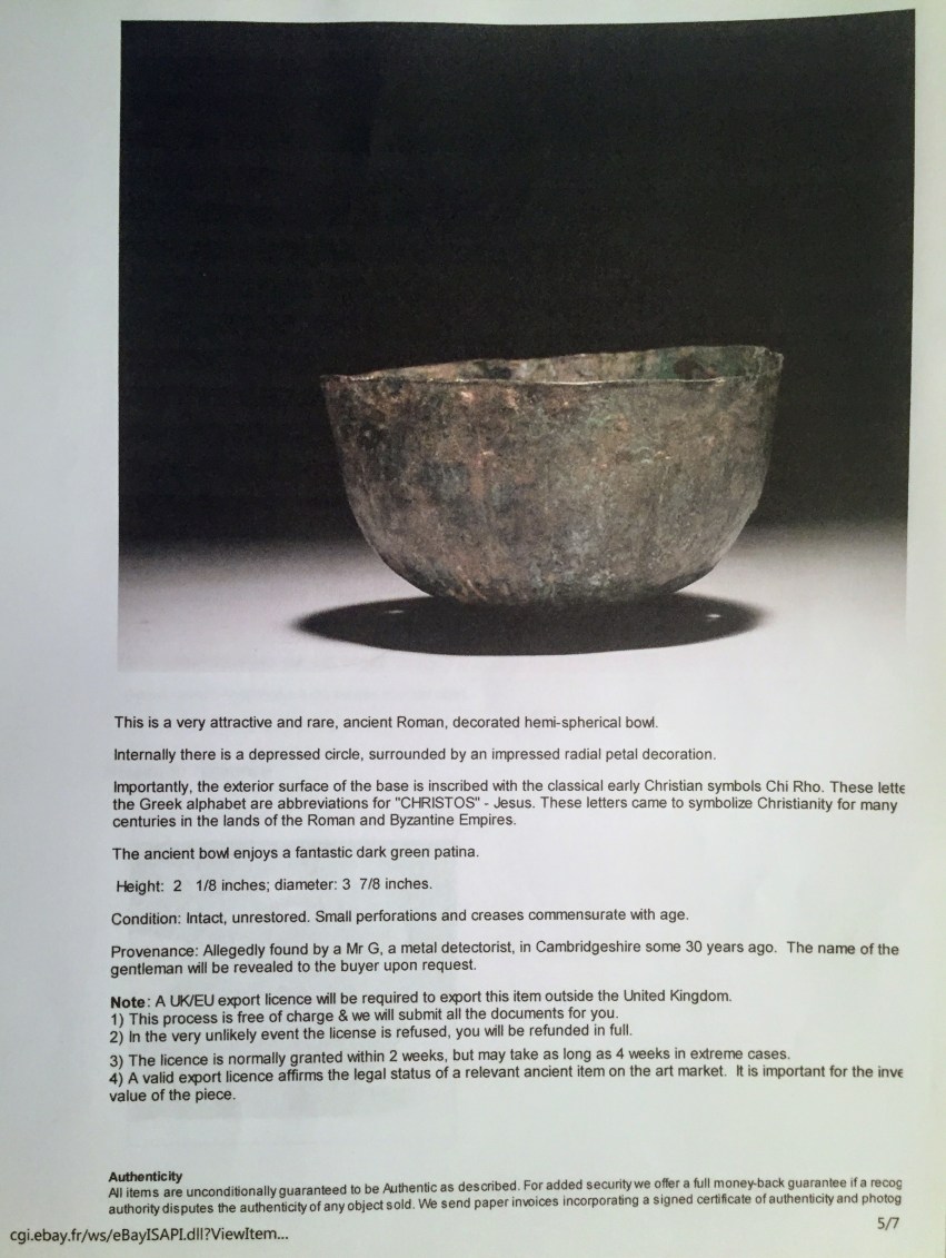 Coupe romaine en bronze avec chrisme – Circa IIIe/IVe siècle de notre ère.
