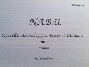Note dans la publication scientifique d’une tablette cunéiforme en juin 2015 par :